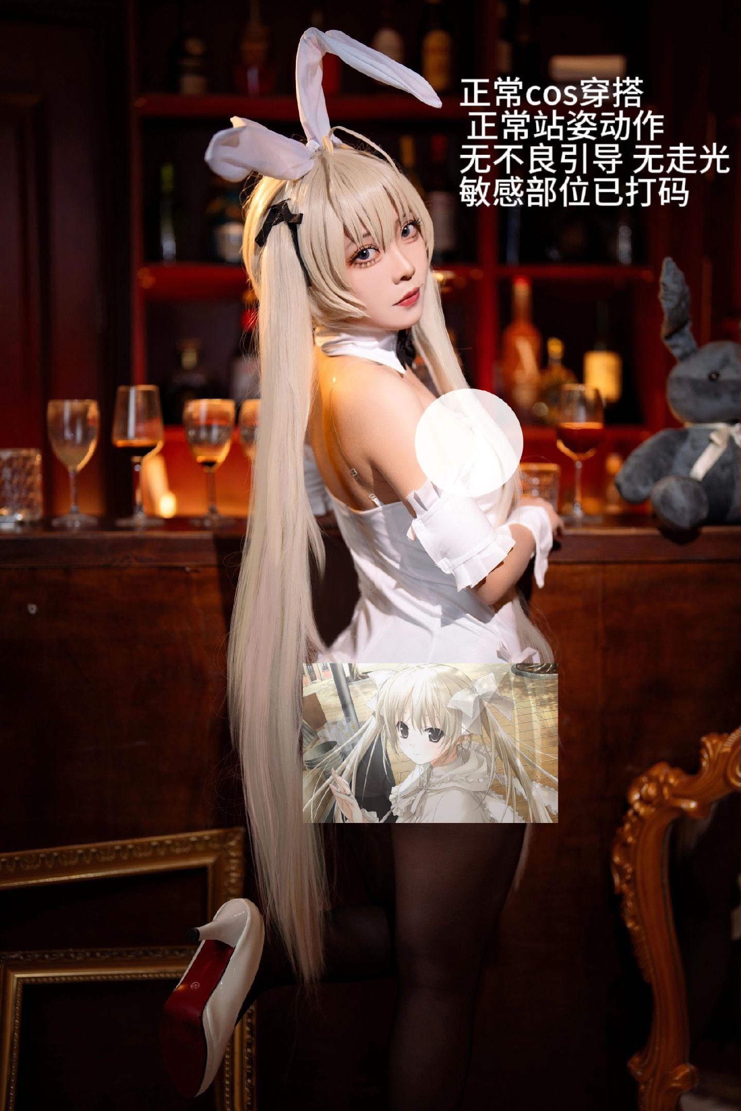 她的装扮不仅在细节上精益求精,还通过完美的服装剪裁和色彩搭配,将兔女郎的形象演绎得淋漓尽致。那身白色的兔女郎装,设计得恰到好处,突出了角色的甜美与性感。特别是高质量的素材和精美的配件,使得整体效果更加出众。她那光滑的肌肤在镜头下显得格外迷人,仿佛每一寸都散发着光泽,衬托出她的完美身材曲线。